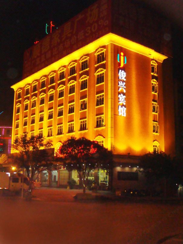 俊興賓館位于英德市中心,建筑面積3800多平方米,雄踞市東西南北交通總匯.車水馬龍,人流不息,商賈云集,百業(yè)昌興的黃金地段.賓館樓高七層既歐路豪情,又獨領南粵風采,別具一格的豪華燈飾,火樹銀花,更顯金碧輝煌.英德俊興賓館中央式空調(diào),擁有固麗佳小度智能化設施、智能化管理和智慧化服務。俊興賓館是旅游,度假,商務,會客的理想地方,東嘗長湖魚,西賞峰林石、南登寶晶宮、北游地下河,聲到車到,彈指一揮間而已。內(nèi)設豪華套房、豪華商務房、標準雙人房、普通雙人房、單人房128張,另設豪華桑拿套間、標準間、沐足間、按摩間、為您的休閑消遣提供方便。
